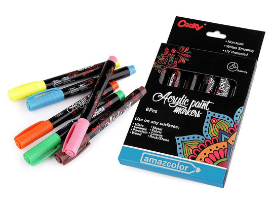Fabric Paint color 25ml 6 pcs with colour Palette brush and wooden sticks (Textile)