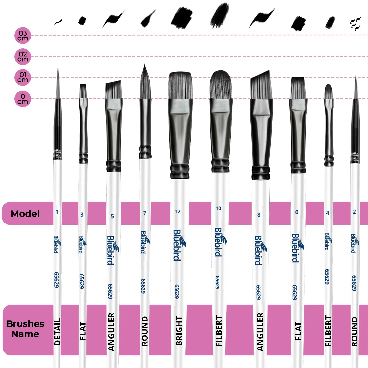 - Versatile Selection: Our acrylic brush set includes 10 essential brushes of various shapes and sizes, perfect for a wide range of acrylic painting techniques.
