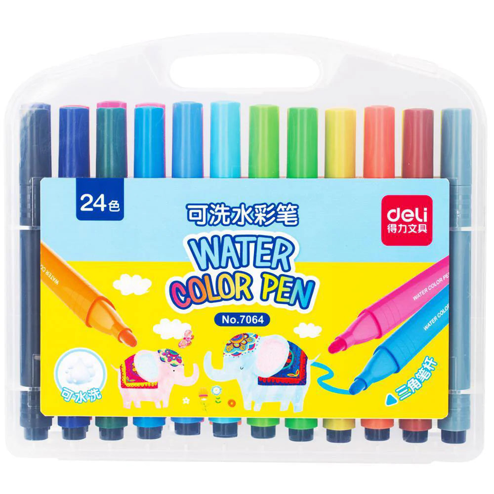 The Deli Set of 24 Student Watercolor Pen Markers is a high-quality coloring set designed for students, artists, and hobbyists. These watercolor markers provide vibrant and blendable colors, making them ideal for creative projects, artwork, and school assignments.