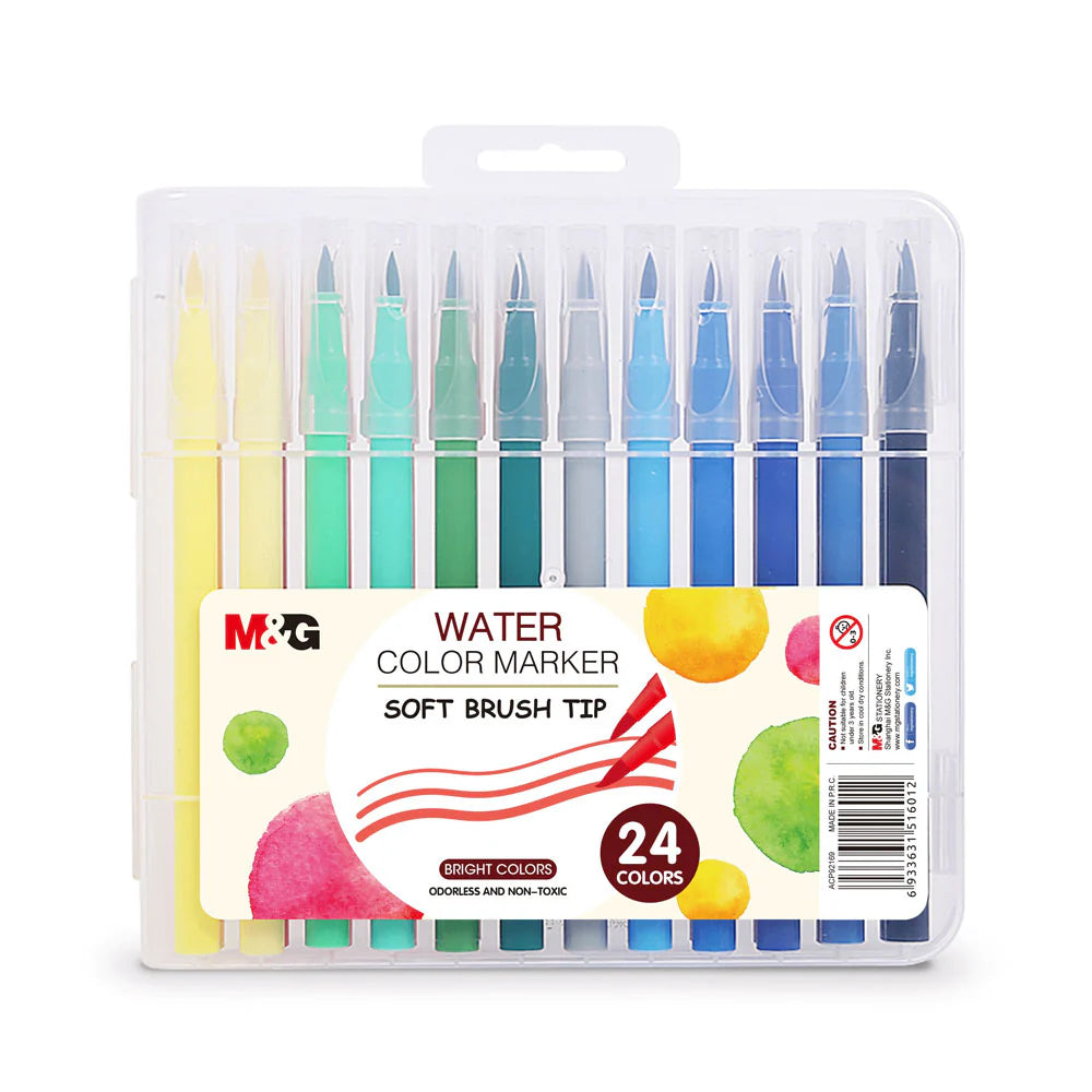 M&G Soft Brush Tip Water Color Markers feature a flexible brush tip for smooth strokes and easy blending. With water-based ink for classic watercolor effects, they come in vibrant colors, making them ideal for illustrations and sketches. Lightweight and user-friendly, these markers are perfect for both beginners and experienced artists.