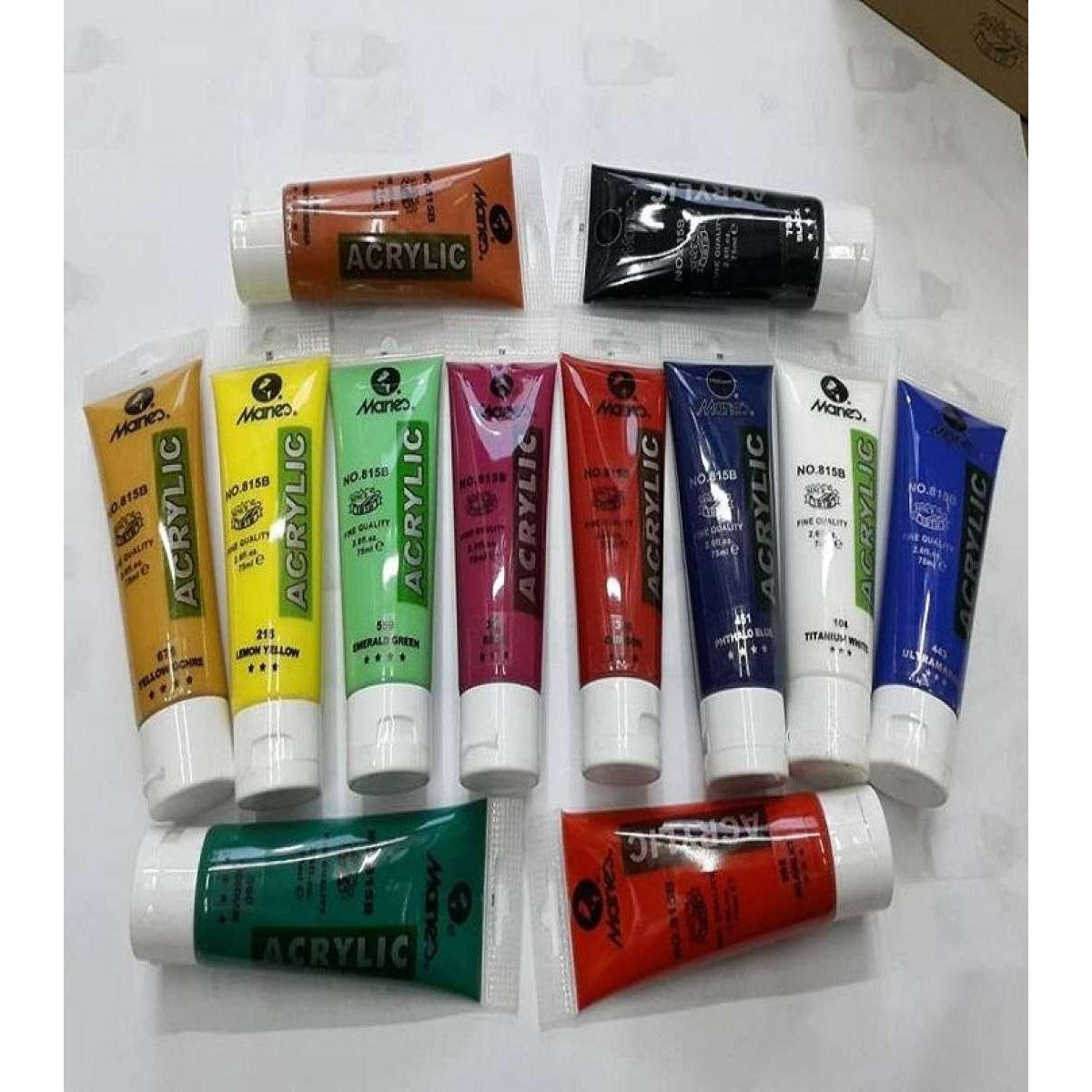 Marie's Acrylic Painting Colors Set of 10 (75ml each) is a high-quality collection designed for artists seeking vibrant and durable paints. Each tube contains 75ml of acrylic paint, offering ample supply for various projects.