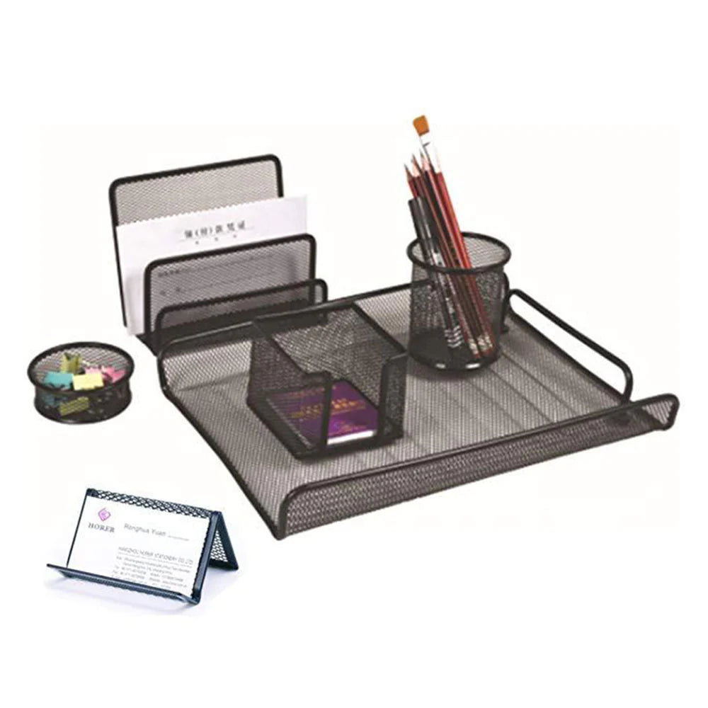 - 6 in 1 Desk Organizer Table Set Pen Stationery Holder Stand & Letter Tray 1 story Tier Metal Mesh