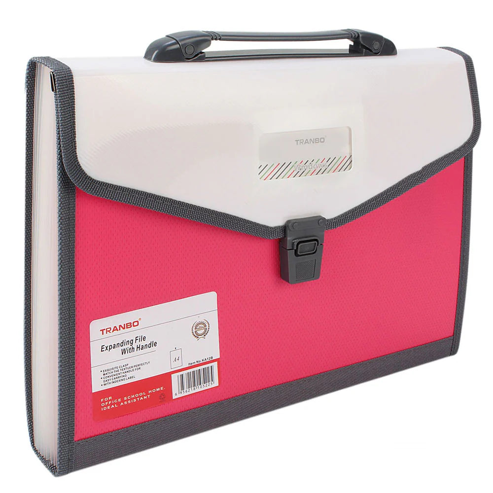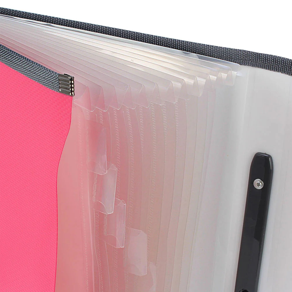 Tranbo Plastic Expanding Bag File Folder With 13 Section Pockets - Pink
